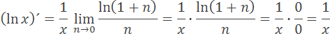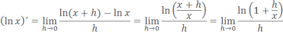 Limitu upravíme pre n sa blíži k nule a dostávame výsledné odvodenia derivácie prirodzeného logaritmu (ln x)´=1/x podľa vzorca