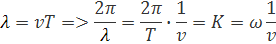 Veľkosť vlnovej dĺžky λ nám udáva veľkosť časového impulzu T nasobenim rýchlostí vlny v. Z týchto hodnôt sa dá odvodiť vlnová konštanta K a uhlová frekvencia ω. Vzťahy medzi λ a K a medzi T a ω môžeme odvodiť z rovnice