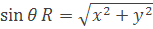 Násobok sinθ polomerom R dáva priesečník štvorca zo stranami x y. Z toho vychádza rovnica