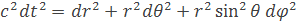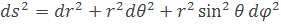 Podľa toho môžeme napísať vzorec, ktorý je podobný súradnicam v gule ako dvojitú Pytagorovú vetu. Zameníme x2=d r2, y2 =r2dθ a z2=r2sinθdφ a miesto R dostaneme prírastok dráhy telesa ds Z toho vychádza rovnica