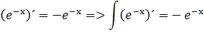 Derivácia v praxi znamená tangens uhla dotyčnice. Dotyčnica funkcie e-x je na osi -x tzn. že derivácia musí byť záporná a z toho si môžeme odvodiť integrál